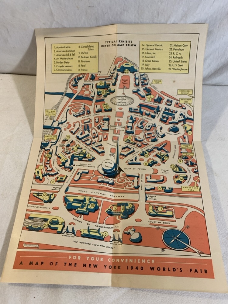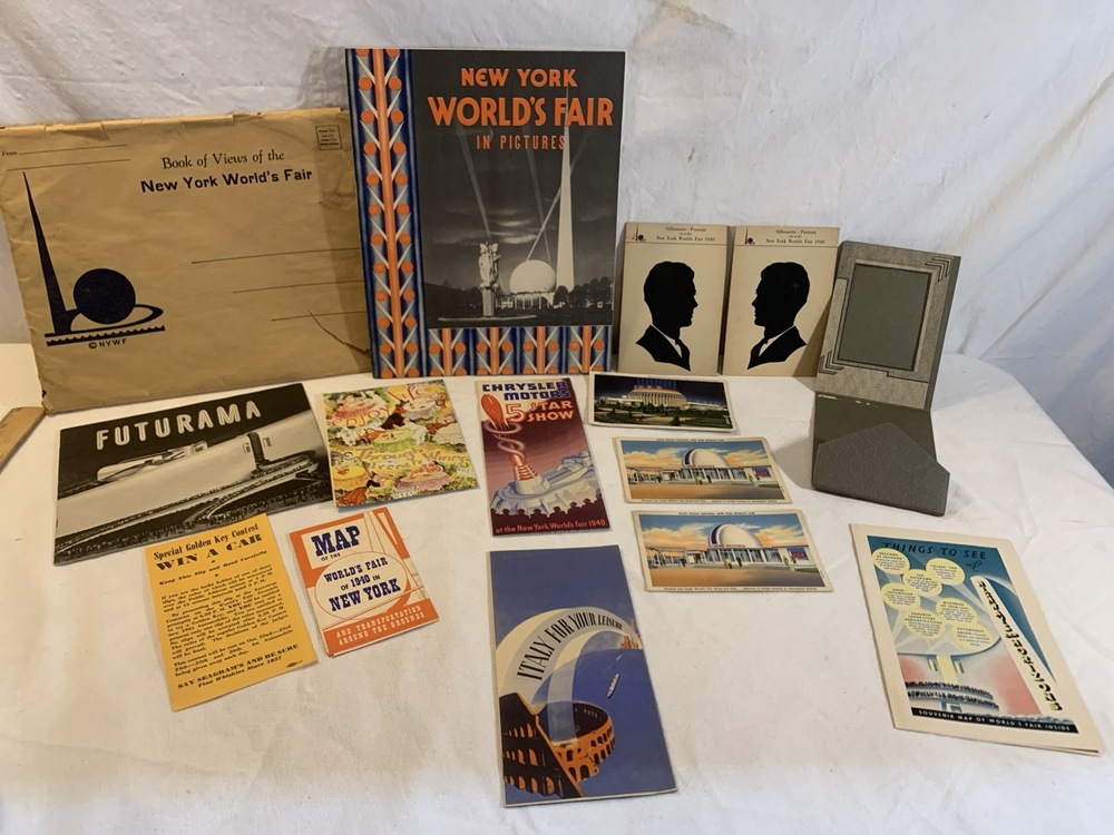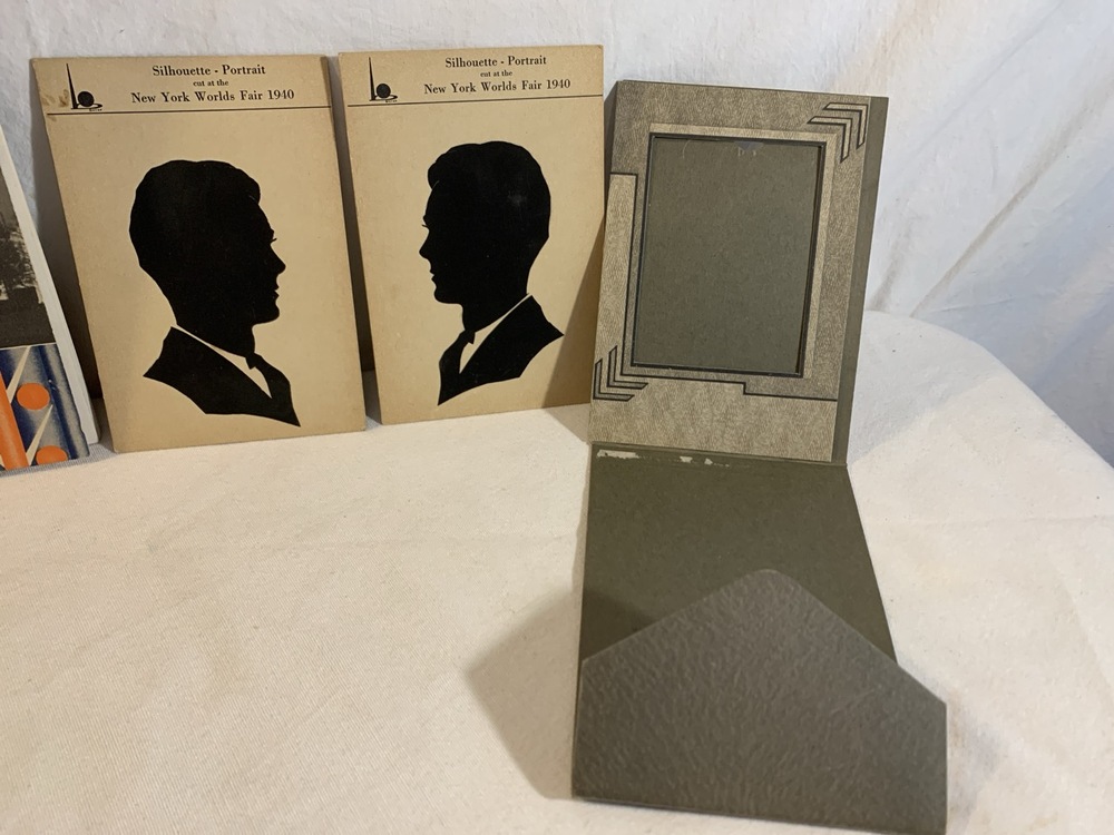 1940 NY World’s Fair memorabilia including Silhouette portraits, Souvenir Book, Maps, Postcards