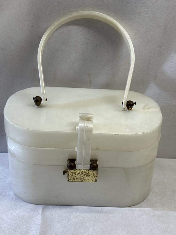 Vtg 1950’s Ascot Pearlescent Lucite Purse- 7” L x 4.5” W x 4.5” T