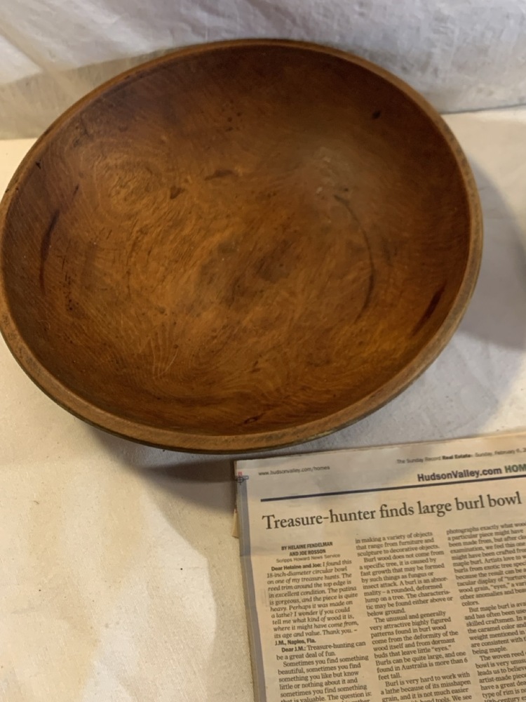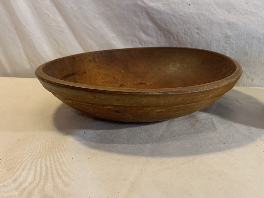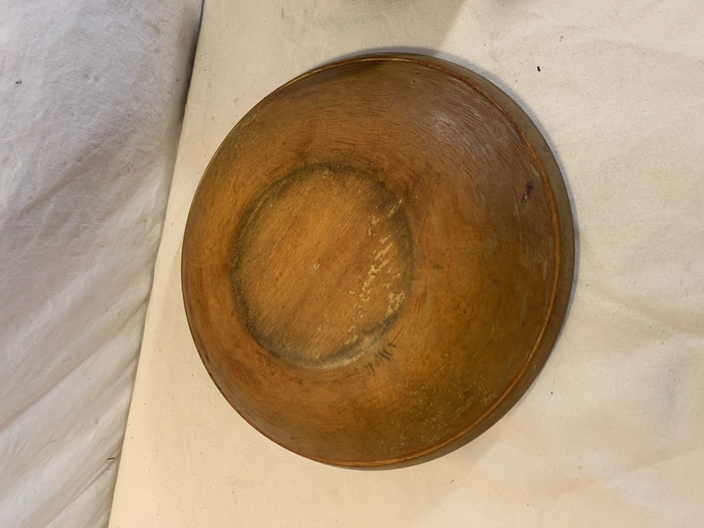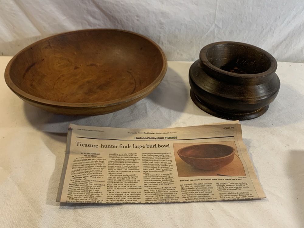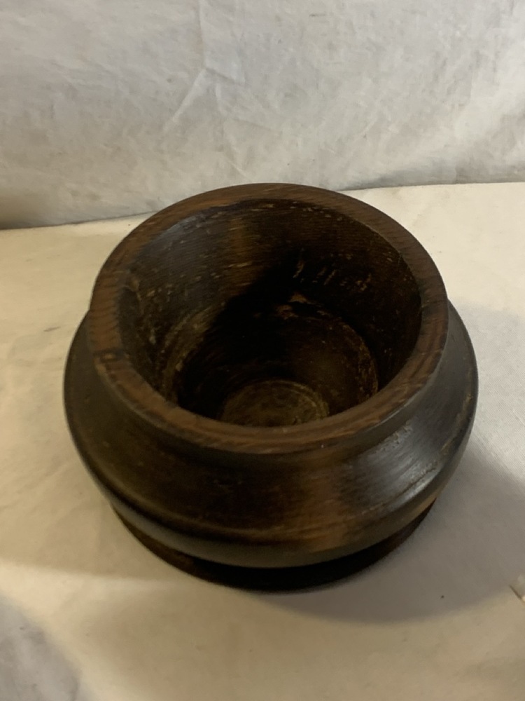 2 Antique Wooden Bowls - 12”x 3” Large Burl Bowl and a 7” x 4” Turned Wooden Mortal