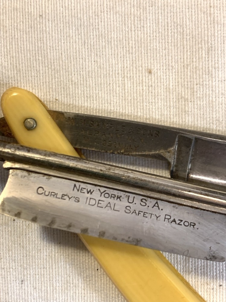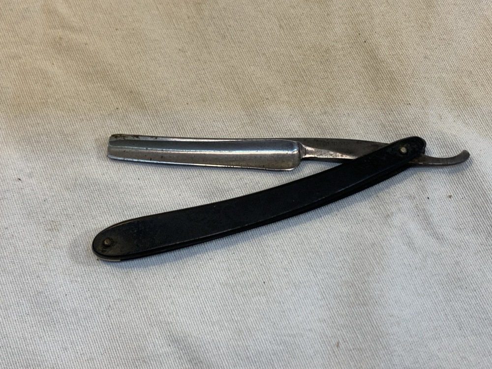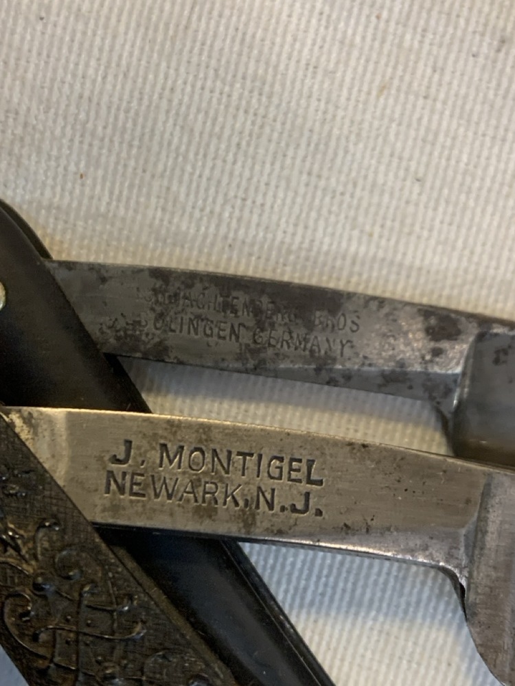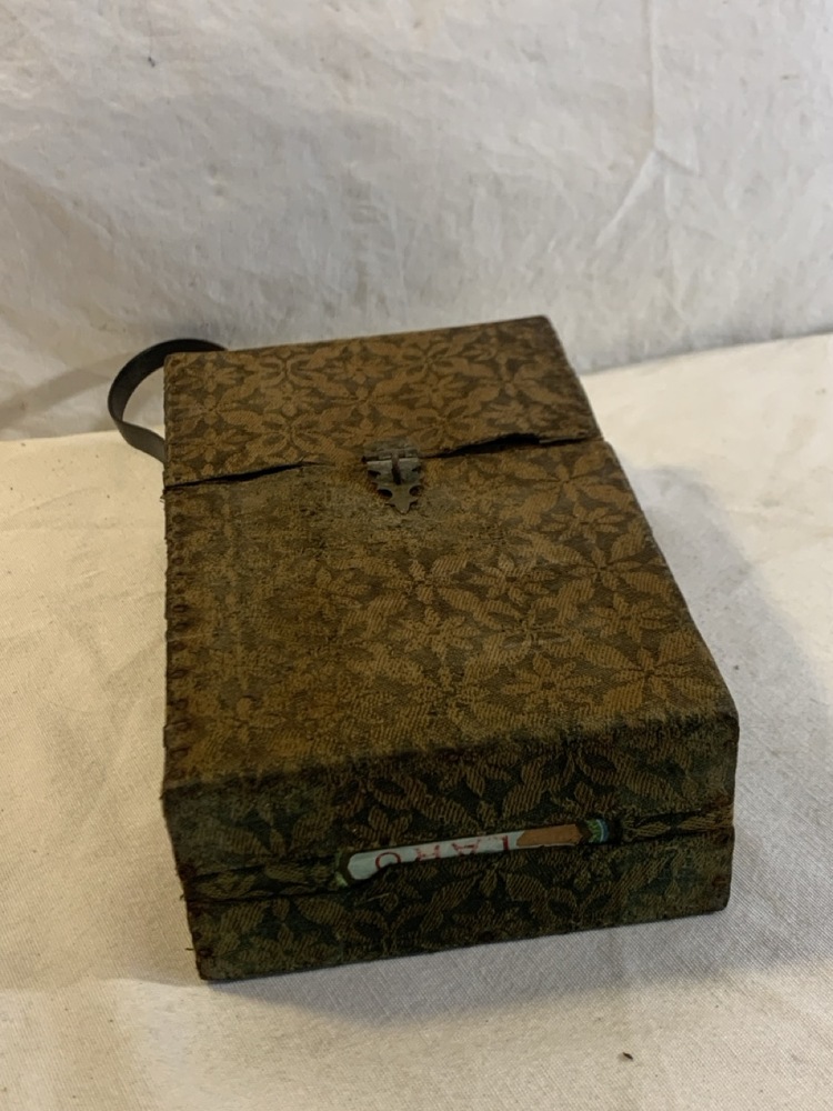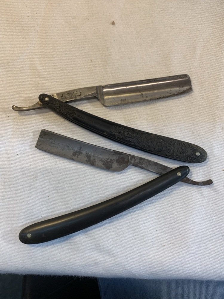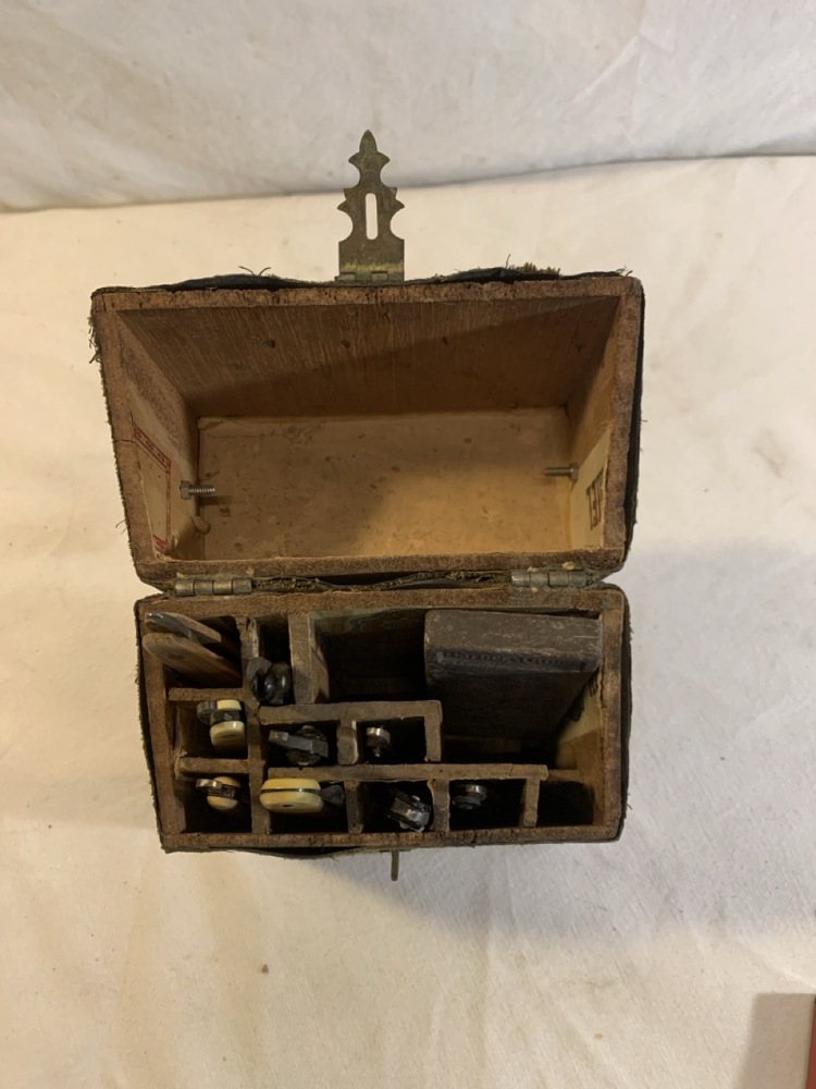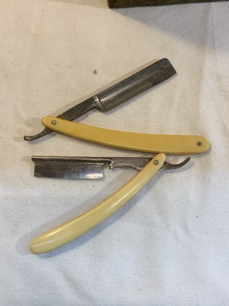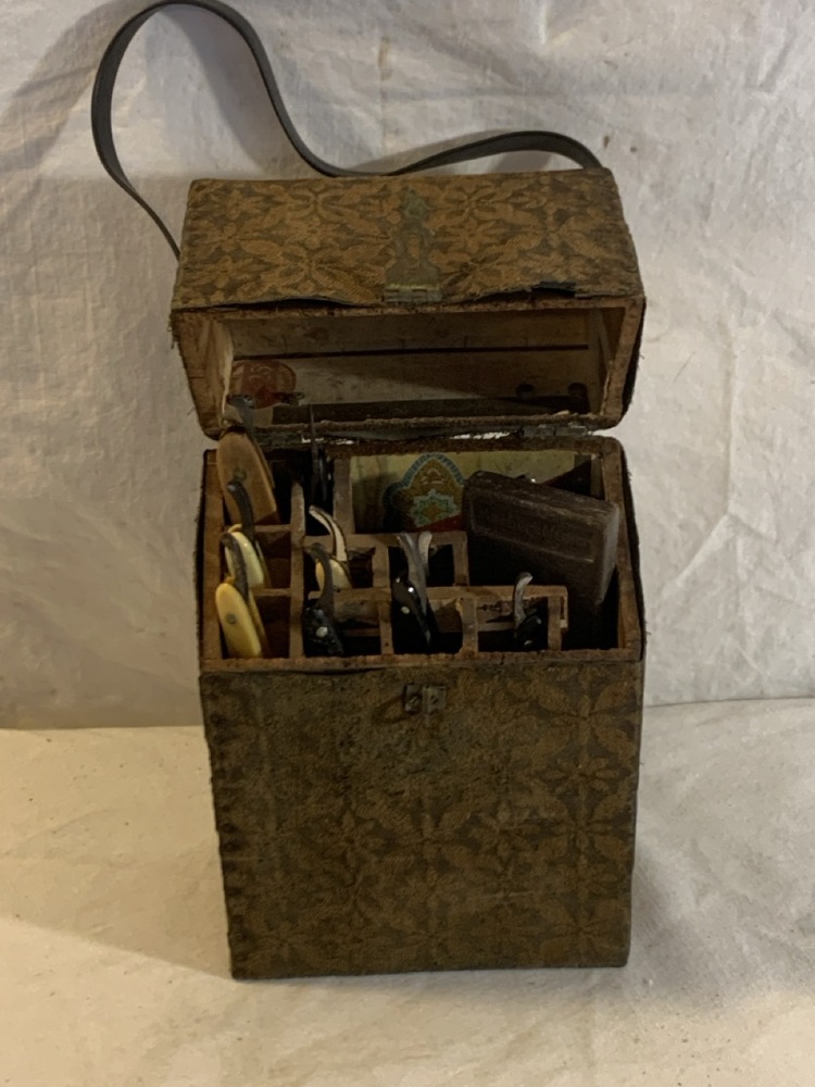Antique Gilt-tooled Leather Covered Cigar Box Full Straight Razors and Sharpening Stone