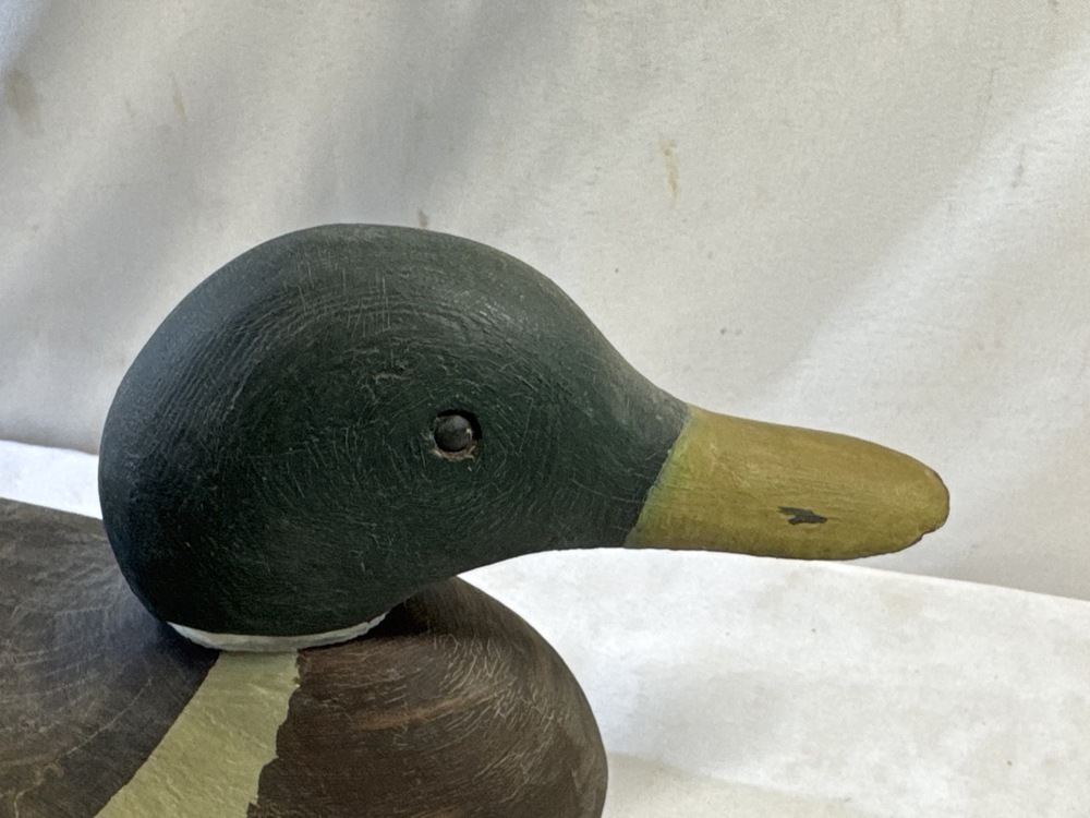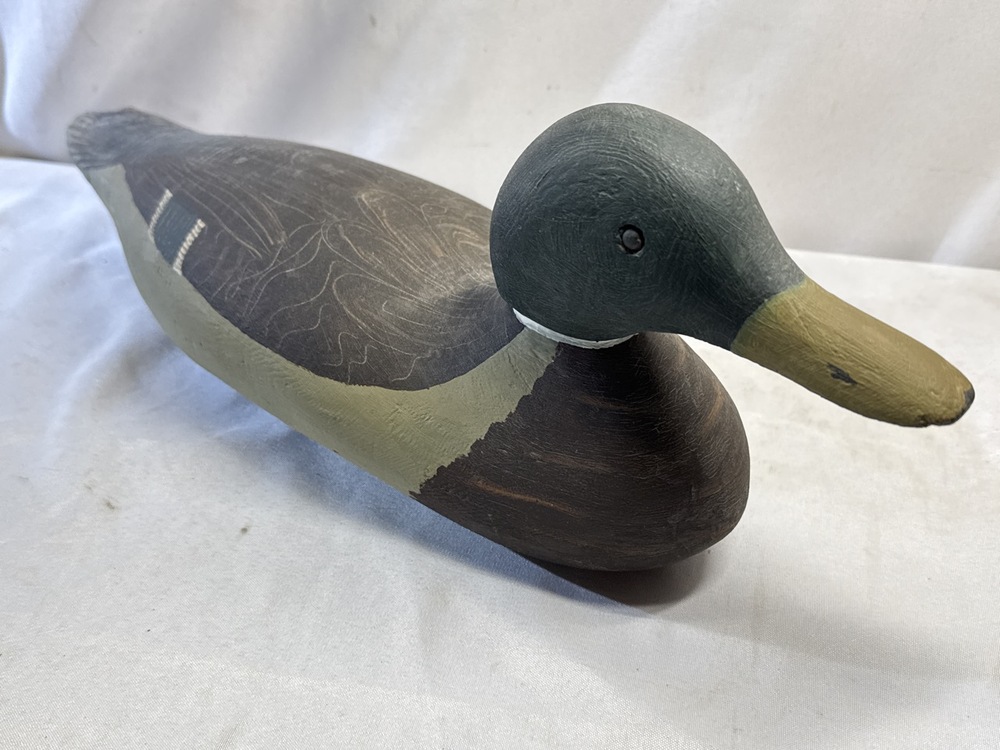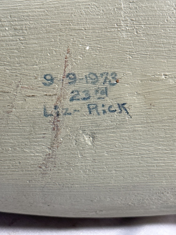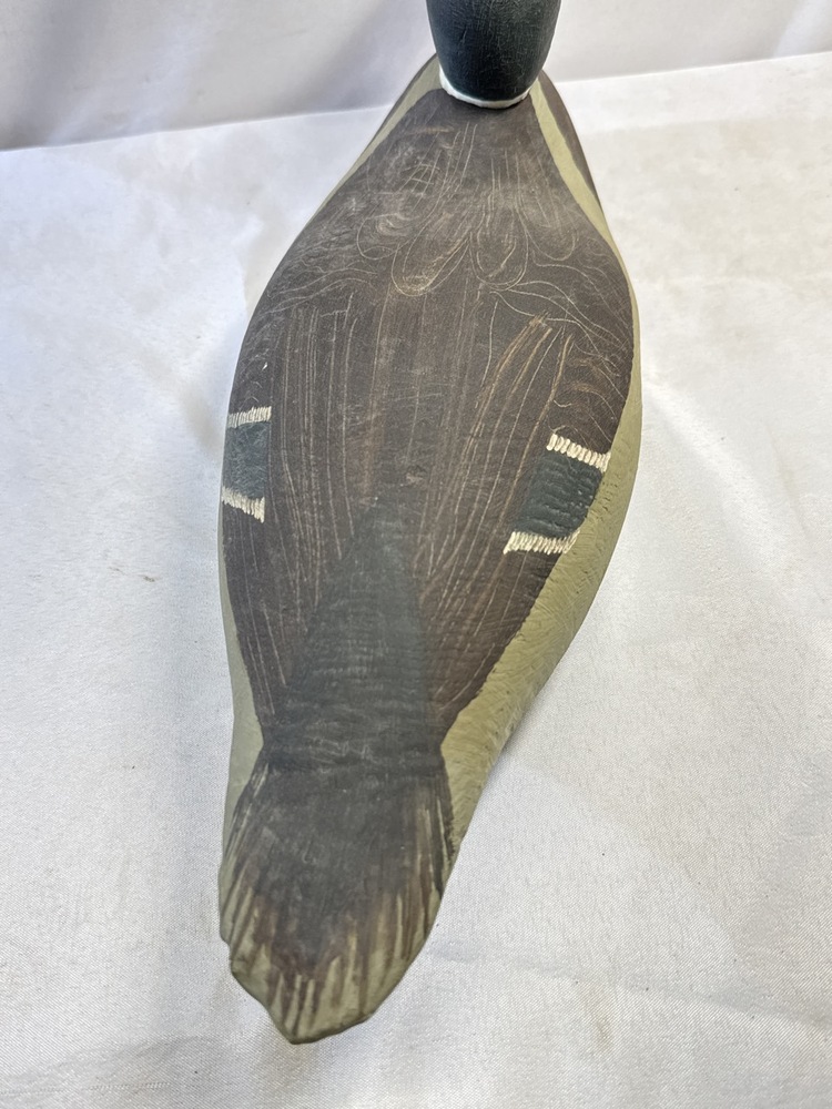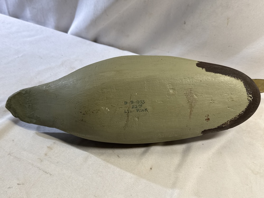 1973 Hand Painted Mallard Duck Decoy, Signed Liz-Rick 9-9-1973- 17” L x 6” W