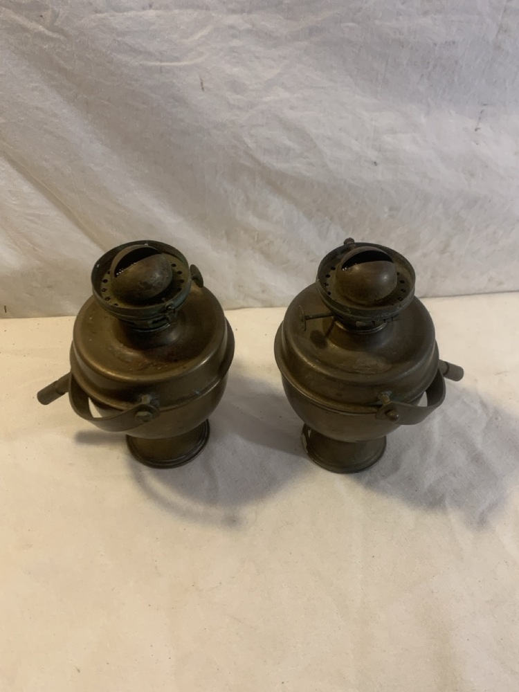 Pr. Vtg. Brass Gimbaled Ship Oil Lamps