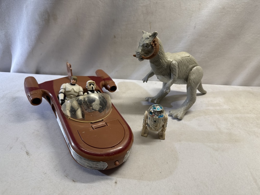 Star Wars Vehicle Landspeeder & Action Figures including Luke Skywalker, Biker Scout, Tautaun, & R2D2