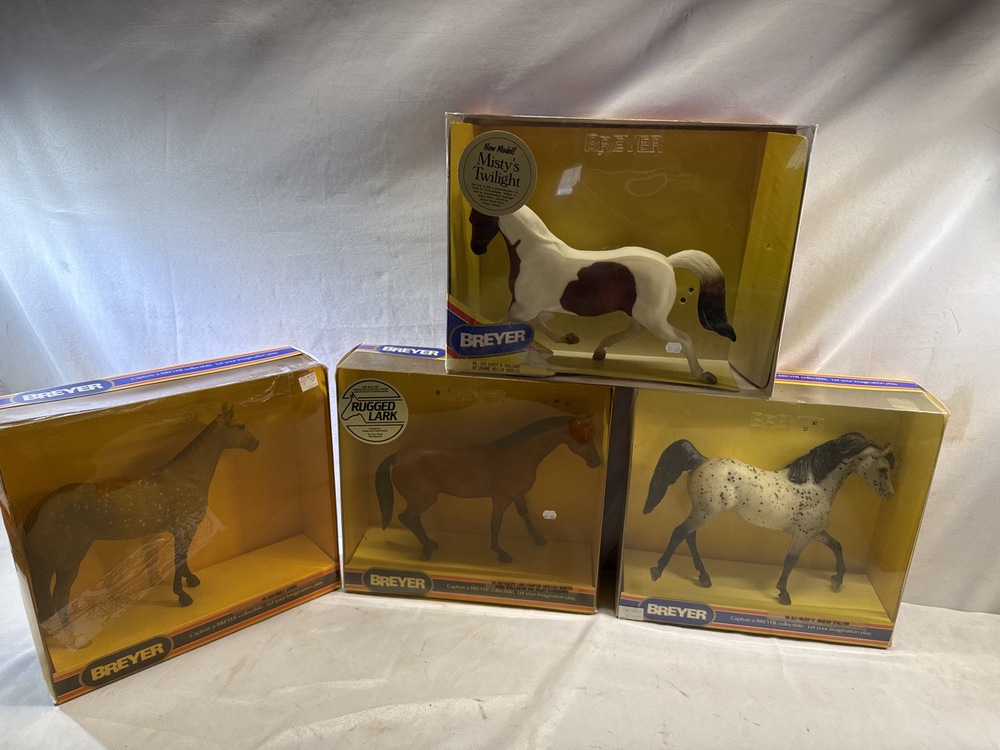 4- Vtg Breyer Horses including No. 820 Noble Jumper, No. 470 Misty’s Twilight by Jeanne Mellon Herrick, No. 811 Majestic Arabian Stallion, No. 450 Rugged Lark Champion Quarter Horse