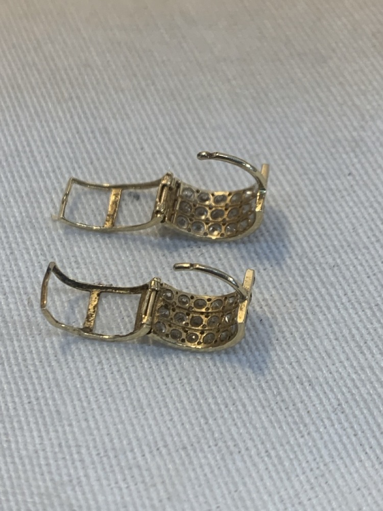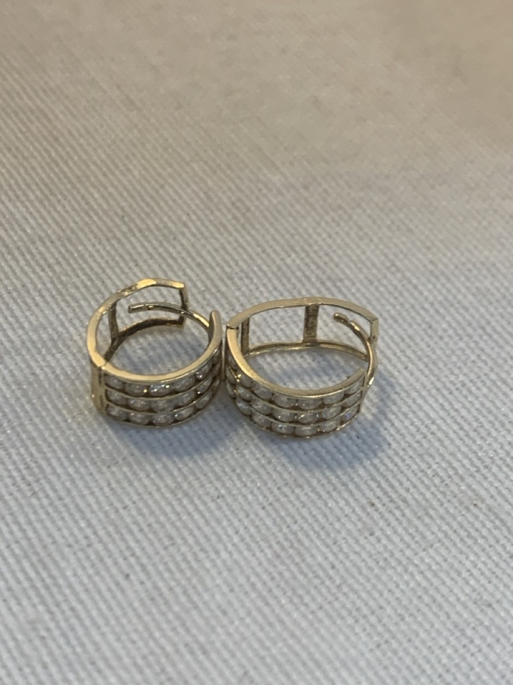 Vtg. 14Kt Gold Huggie Hoop Earrings with 3 Rowd CZ Stones - 1.9 Total Grams
