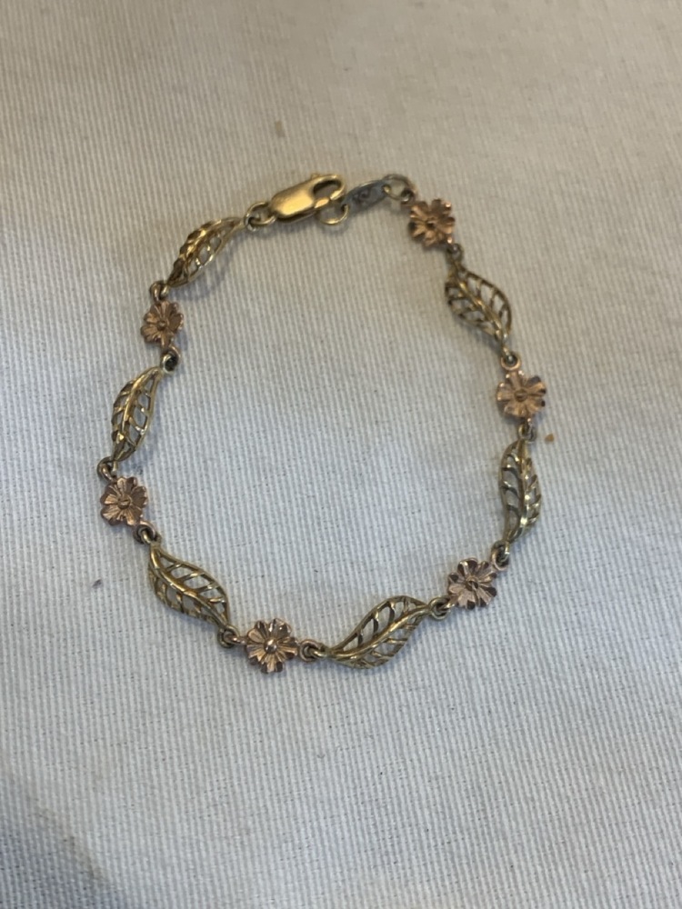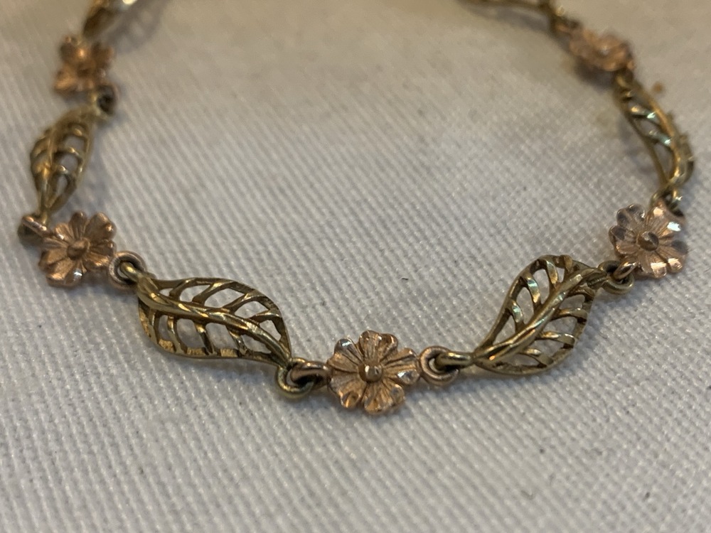 Black Hills 10K Gold Link Bracelet- Leaf/Flowers ~5.5 Grams