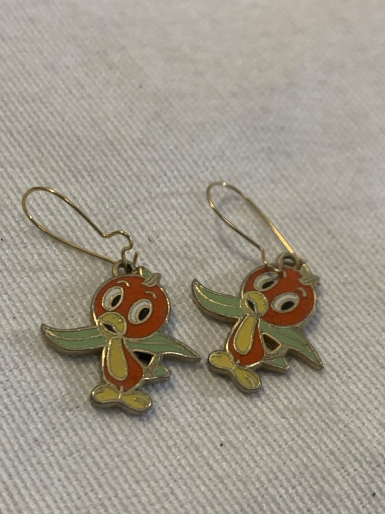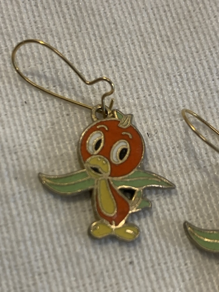 Vtg 1970’s Walt Disney Productions Florida orange Bird Earrings