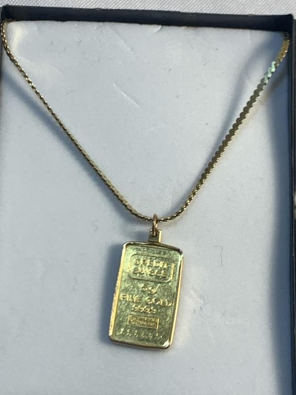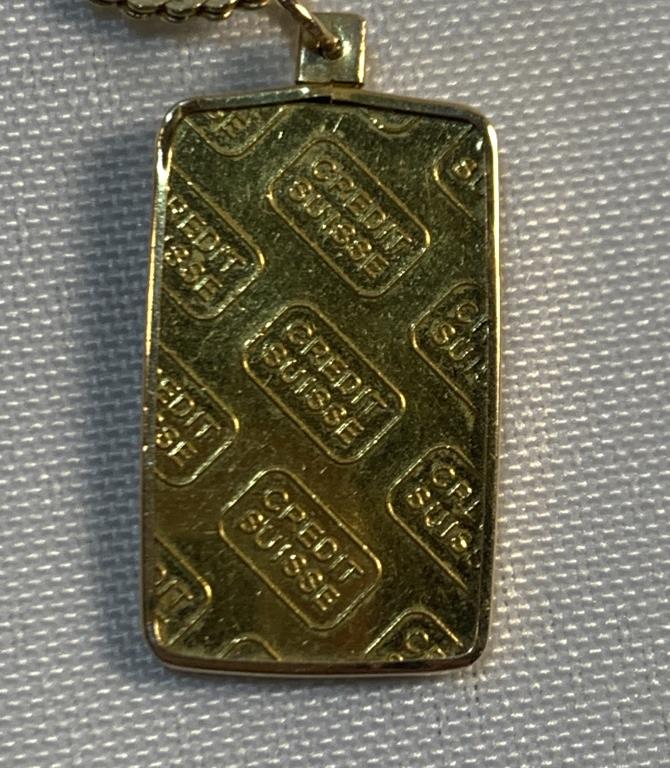 Pendant- 5.5 Grams .999 Gold, 24" 14kt Gold Italy S-link Chain- 7.3 Grams