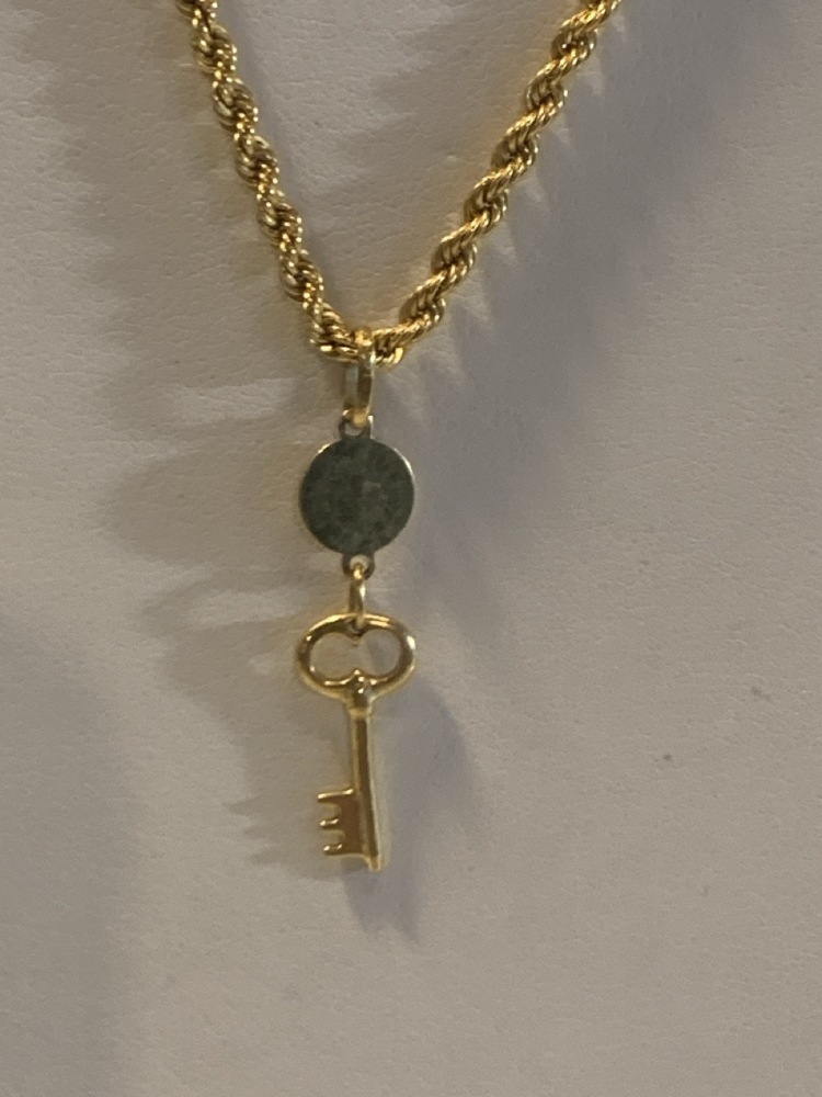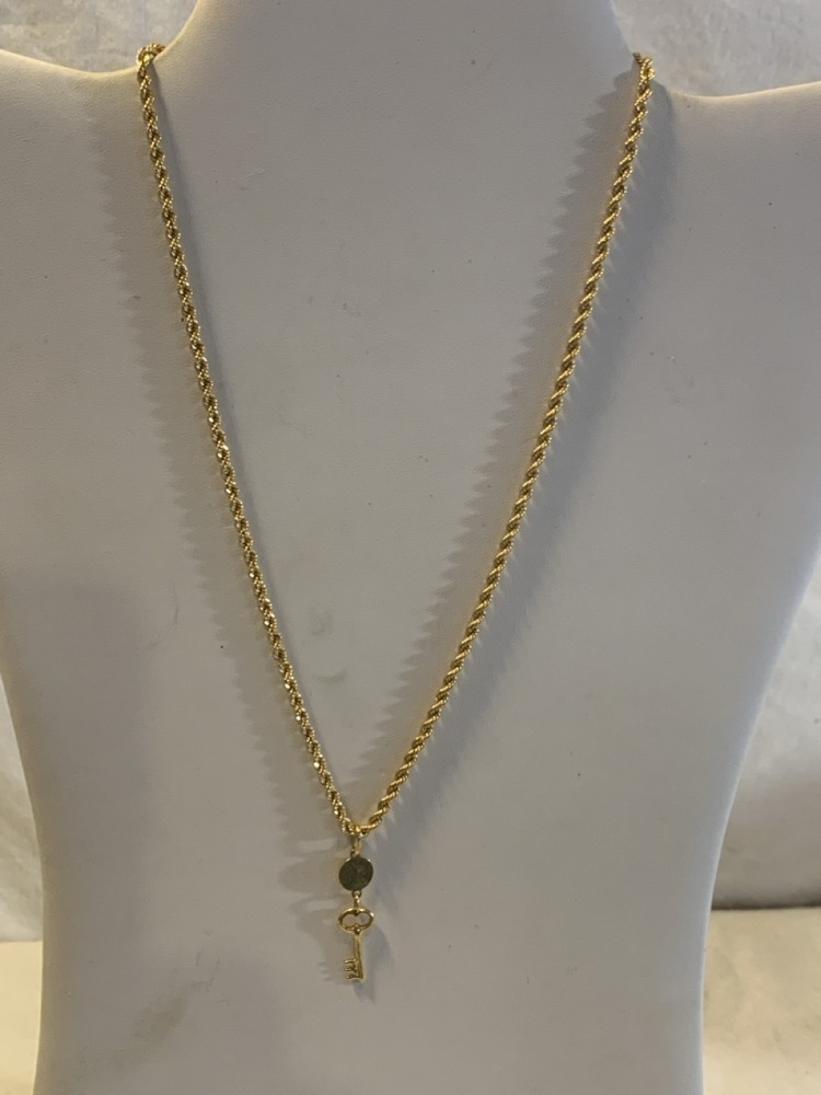 18k Gold Twisted Rope Necklace w/ 18k Della Felicita Key Pendant- 5.1 Grams Total Weight