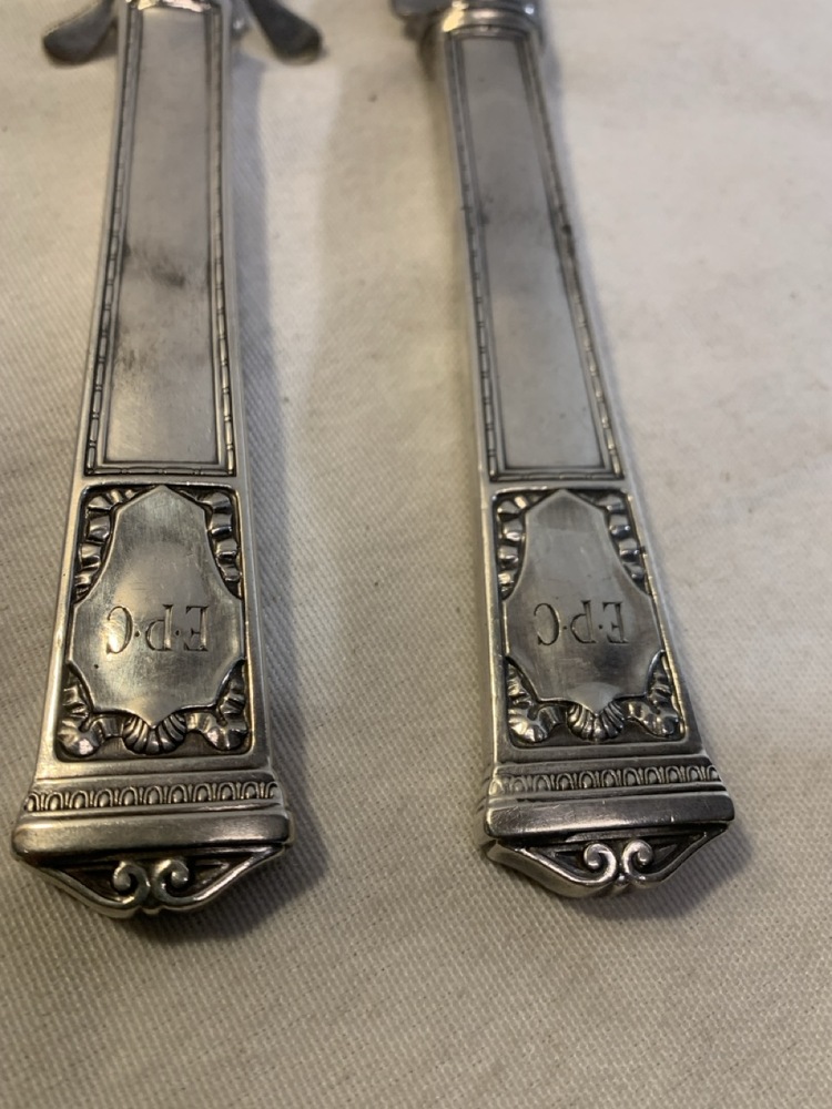 Vtg Tiffany & Co. San Lorenzo Pattern Sterling Silver Handle Carving Set- Renaissance Revival Style- 280 Grams Total Weight