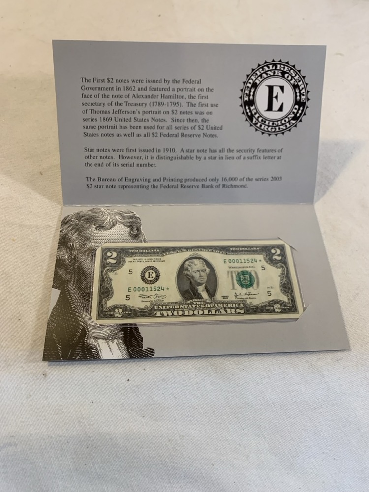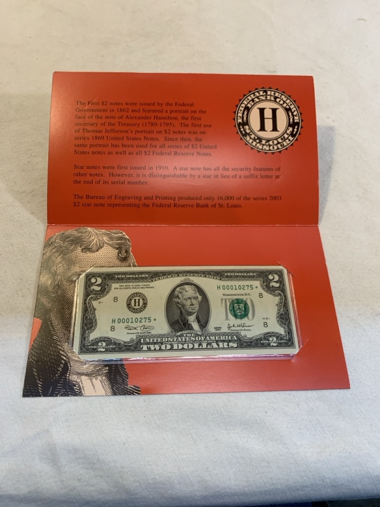 12 Star Notes Low Serial Numbers ; Series 2003 $2 Dollar Bills
