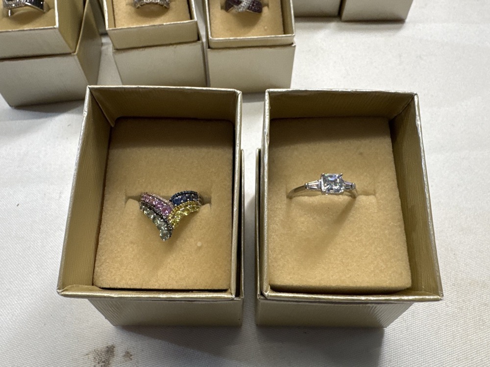 20- JTV Sterling Silver Ring Lot Including Lab Created Diamonds & Gem Stones-11 Grams Total Weight