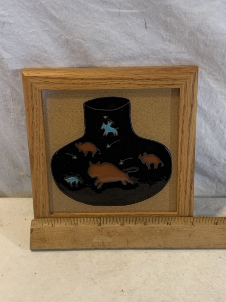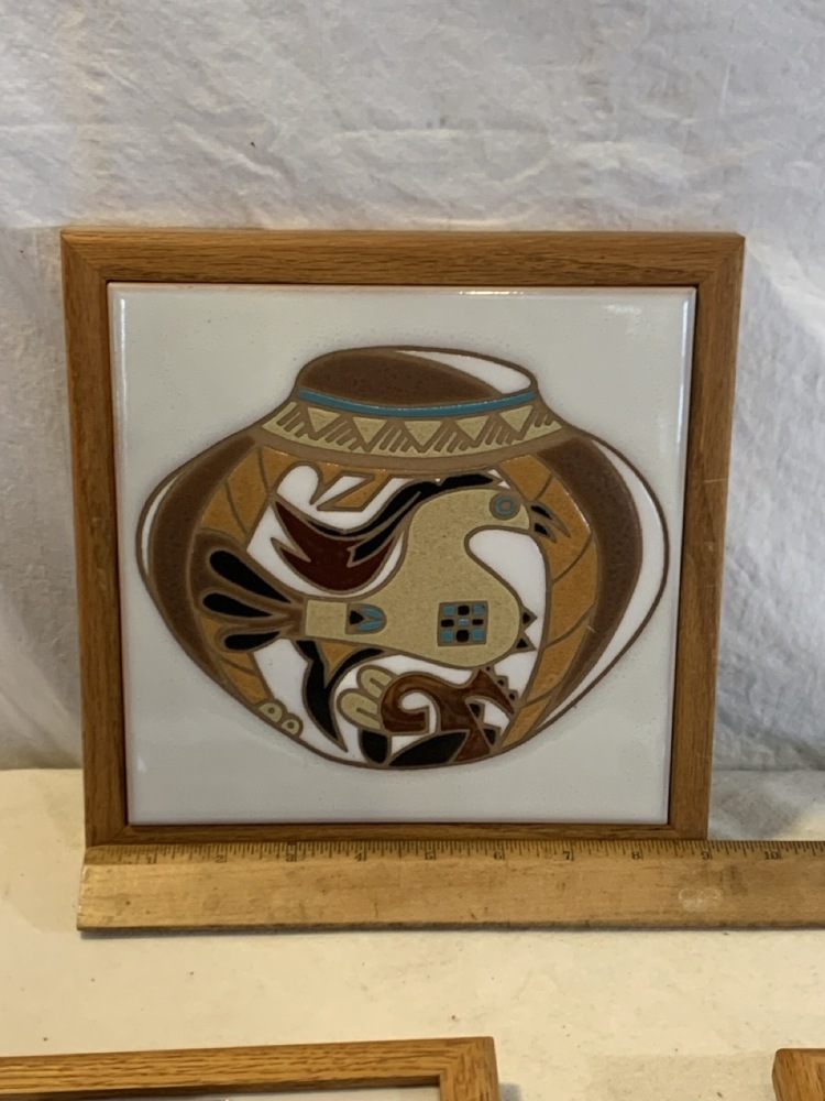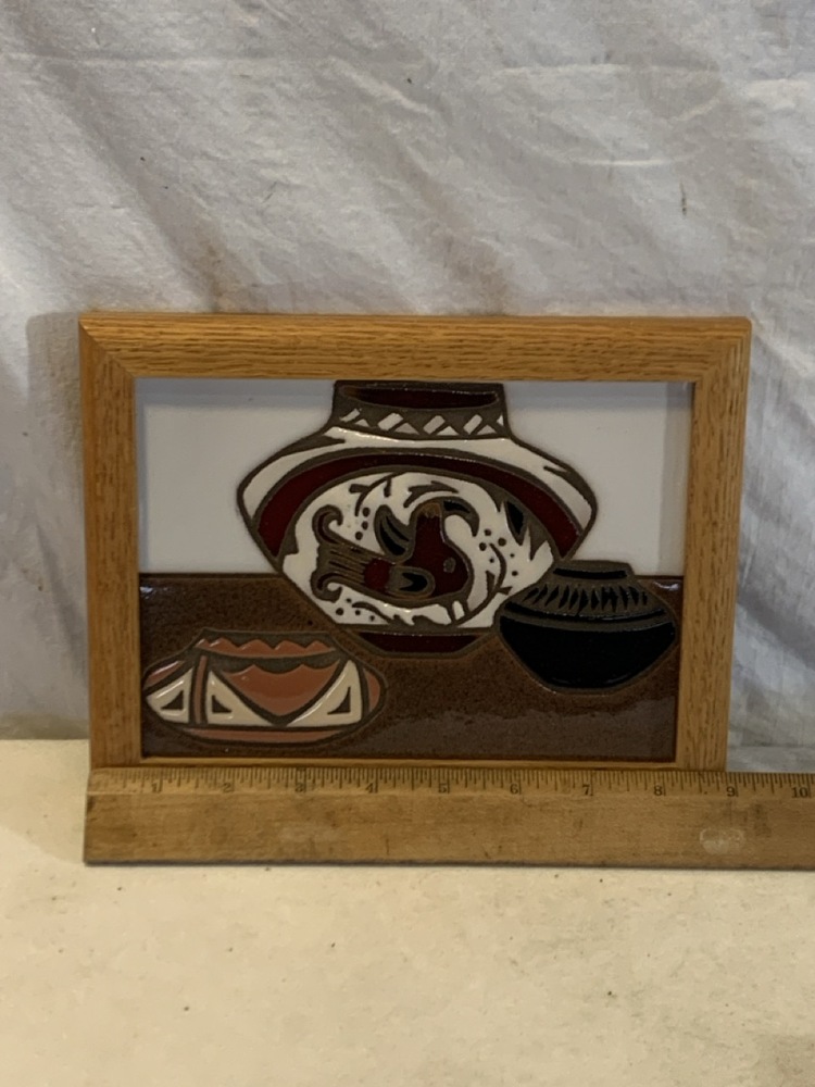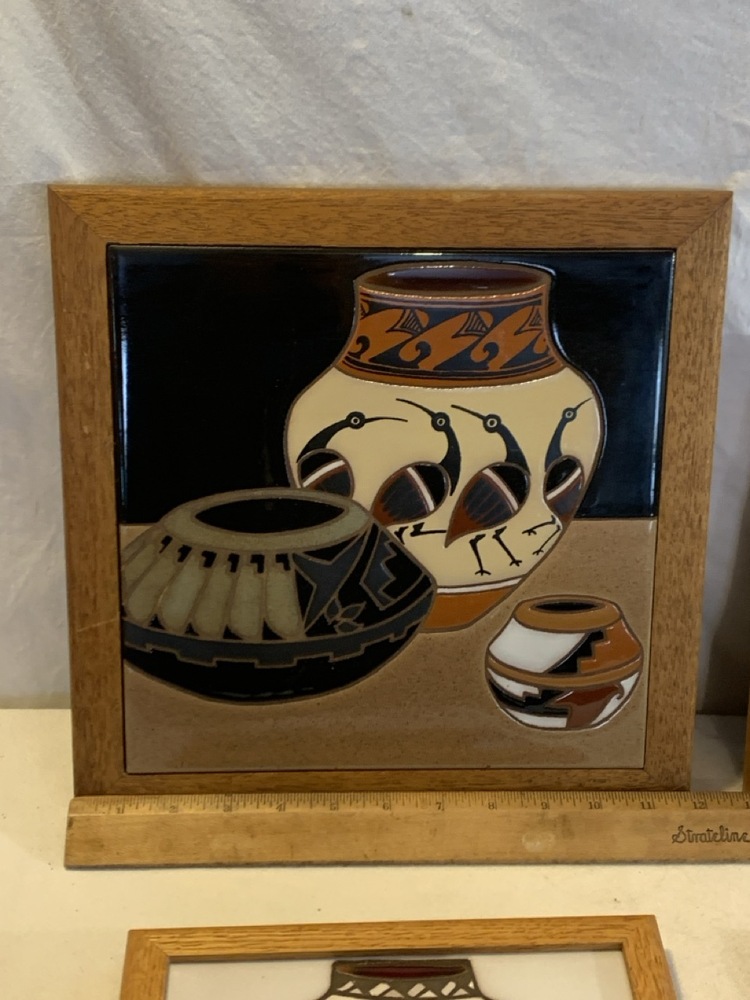 Vtg. Ceramic Pictorial Trivets; including 1987 Arius Sante Fe Ceramic Tile “Trio Pots”