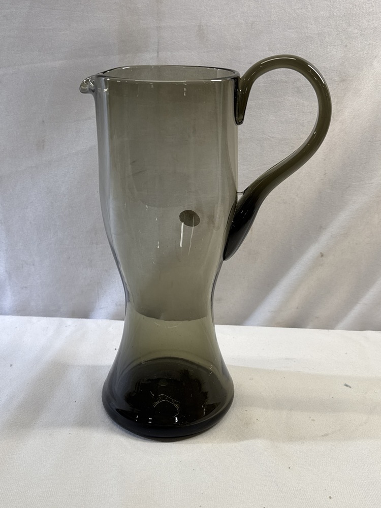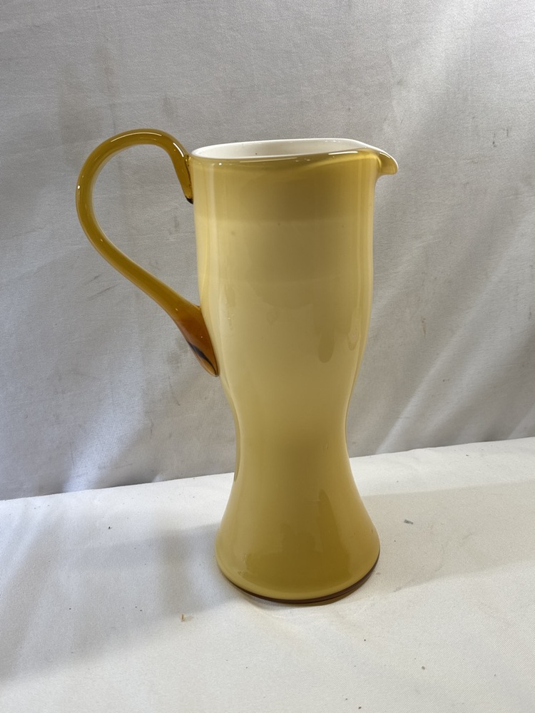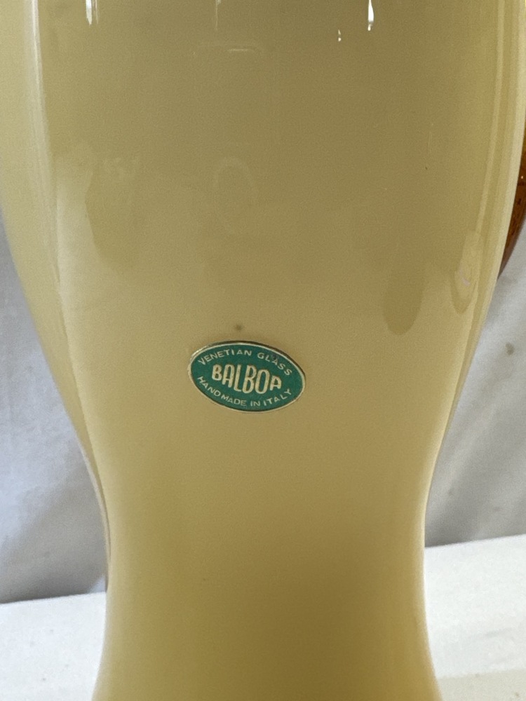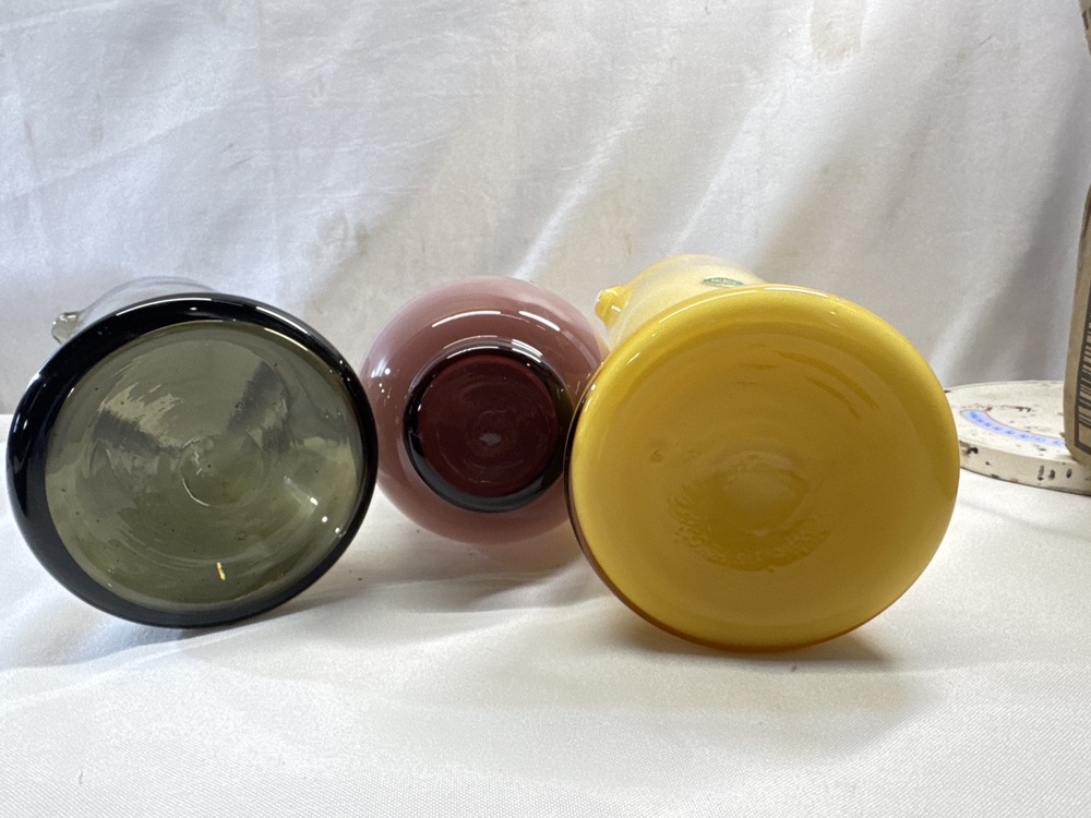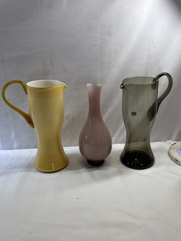 3 Hand Blown Art Glass Balboa Venetian Glass Pitchers and Vase - Yellow Pitcher, Grey Pitcher and Pink Vase- Italy