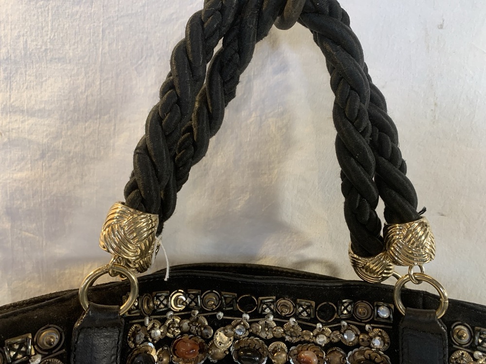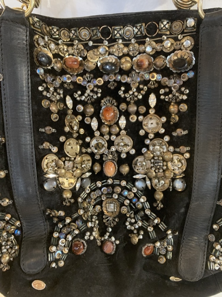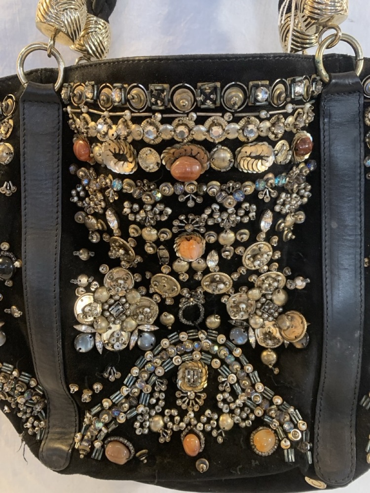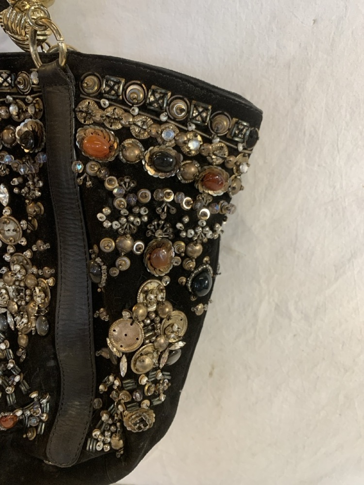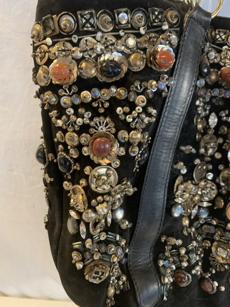 Oscar De la Renta Beaded Handbag Suede Leather & Beaded