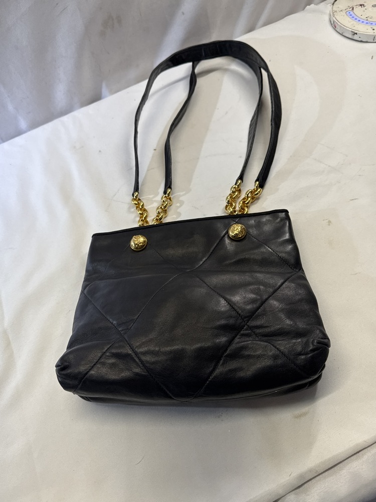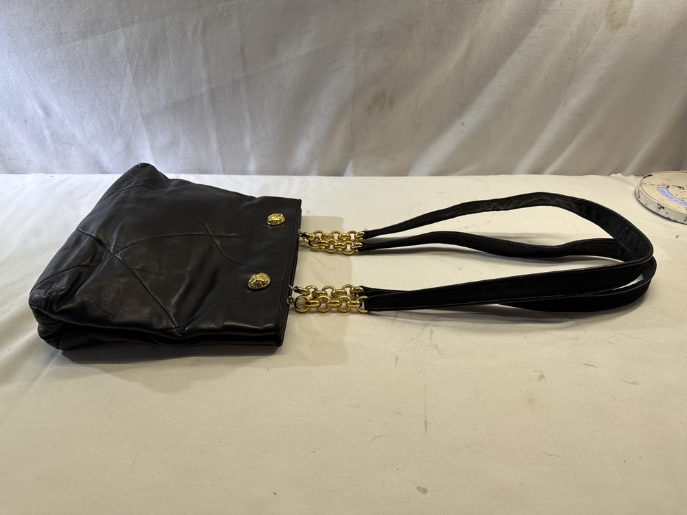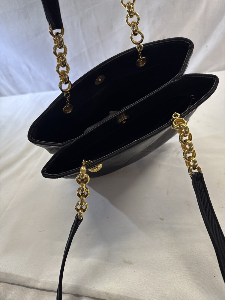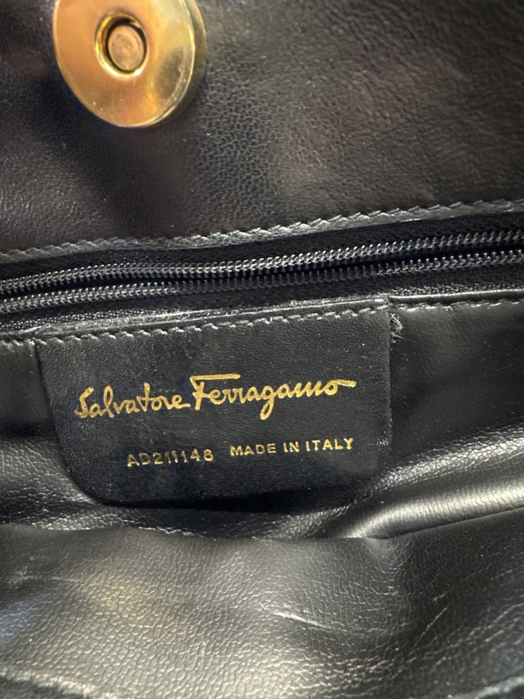 Salvatore Ferragamo Black Leather Shopper Tote - 11” x 10”