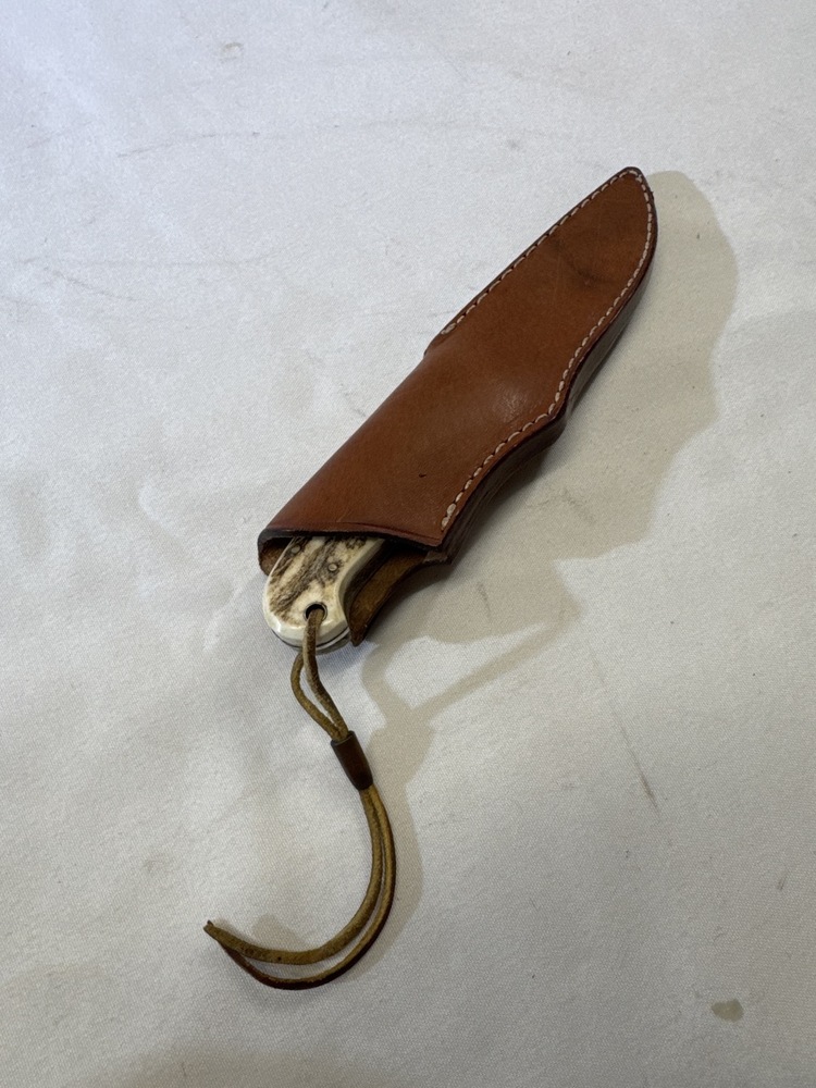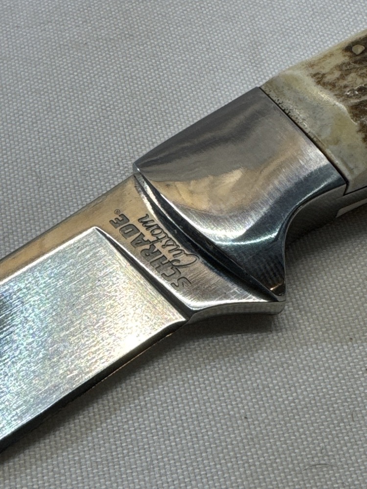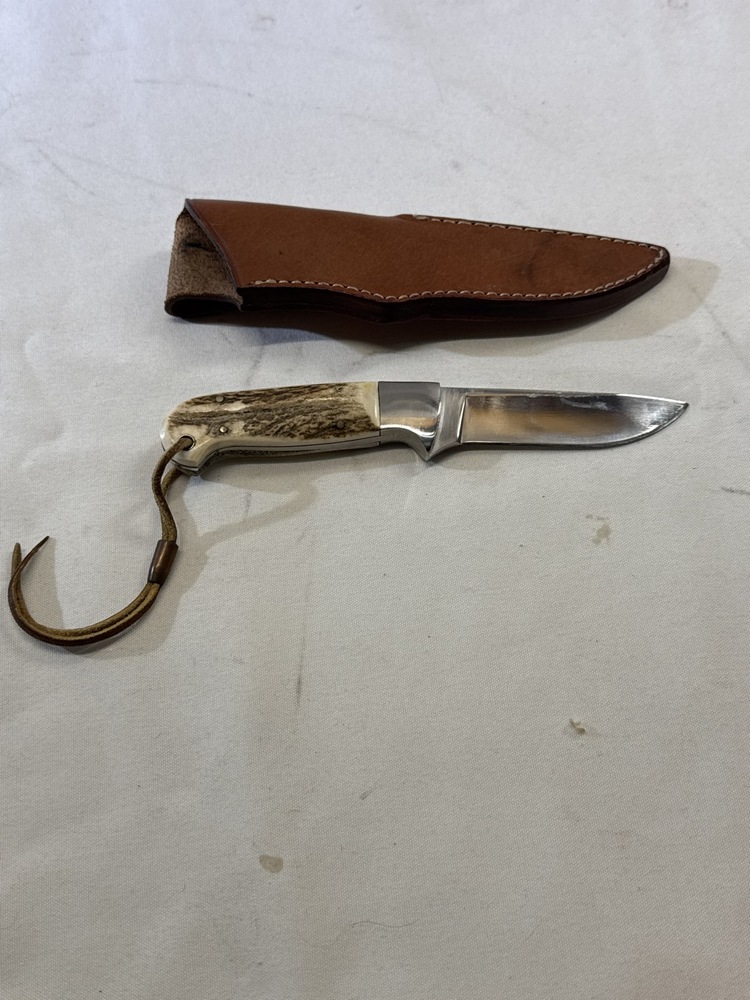 Custom Schrade Knife with Stag Handle and Sheath - 8” Long