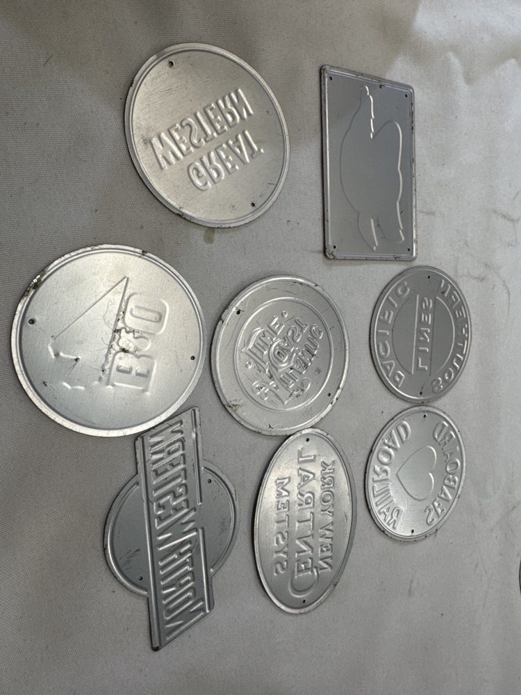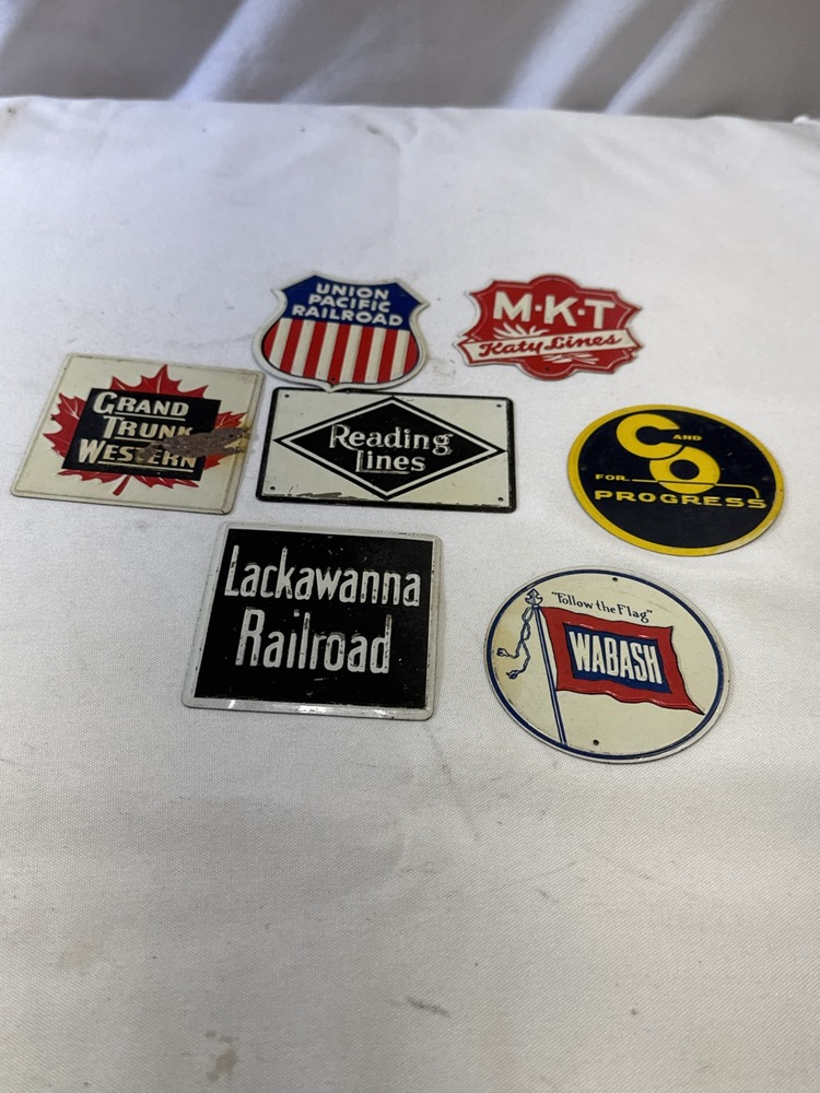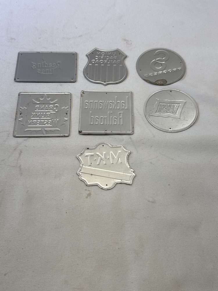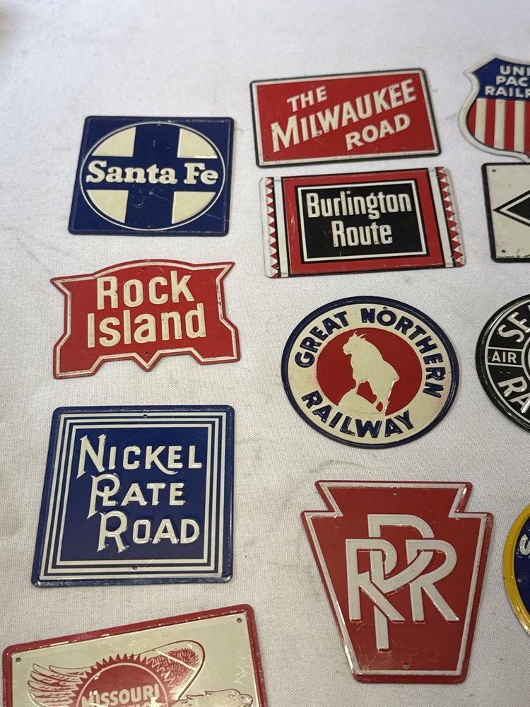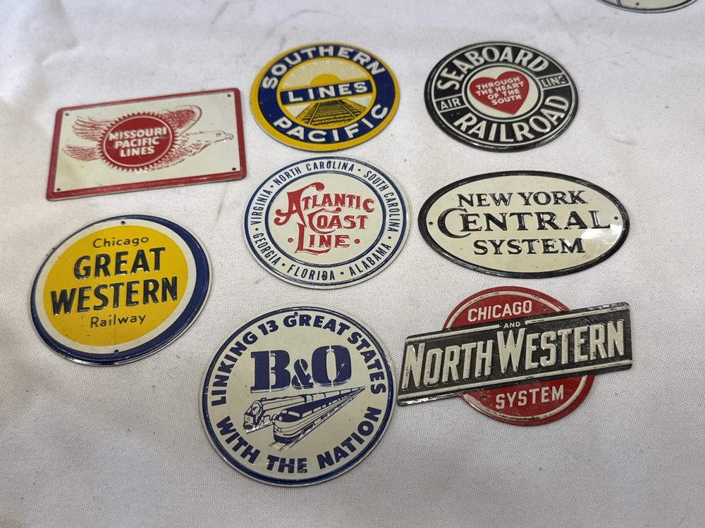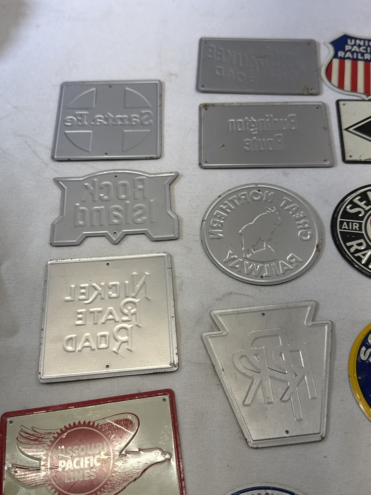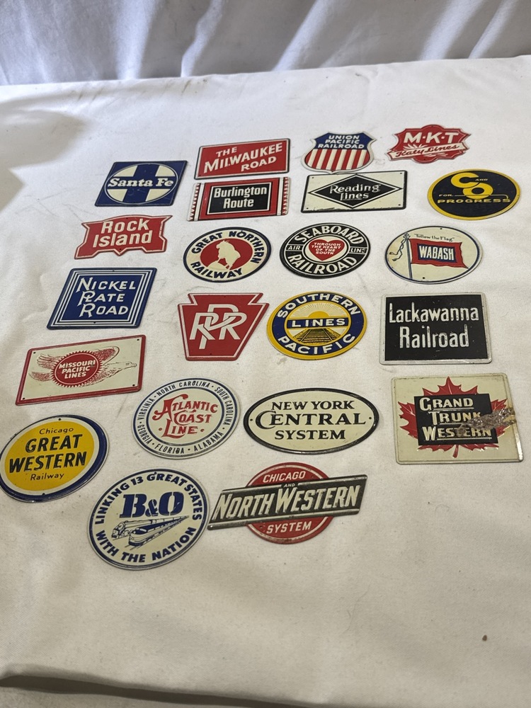 22 Vtg. Mini Tin Railroad Advertising Signs - Appro. 3” - 3 1/5”
