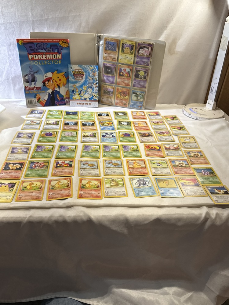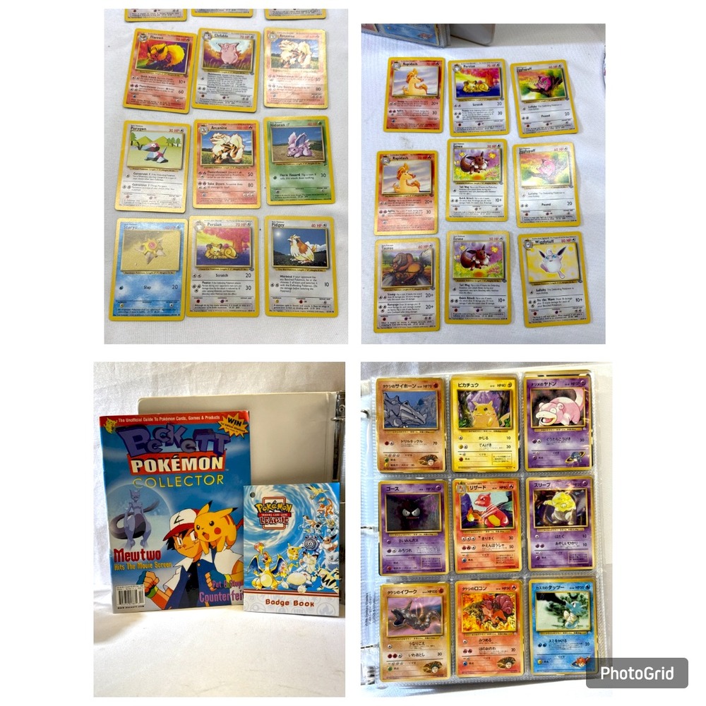 Binder Full of Pokemon Cards and Pocket Monsters - Beckett Pokemon Collector Guide Book and Badge Book. 201 x Pocket Monsters ; 159 x Pokemon Cards ( Various Dates Between 1995-2000)