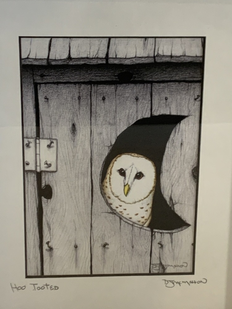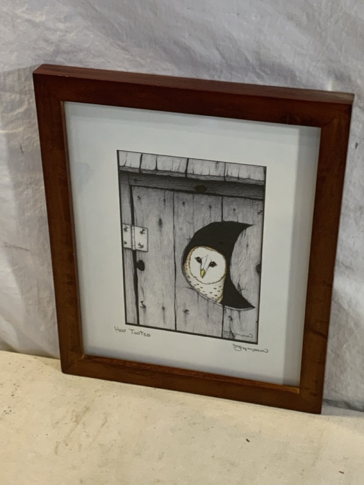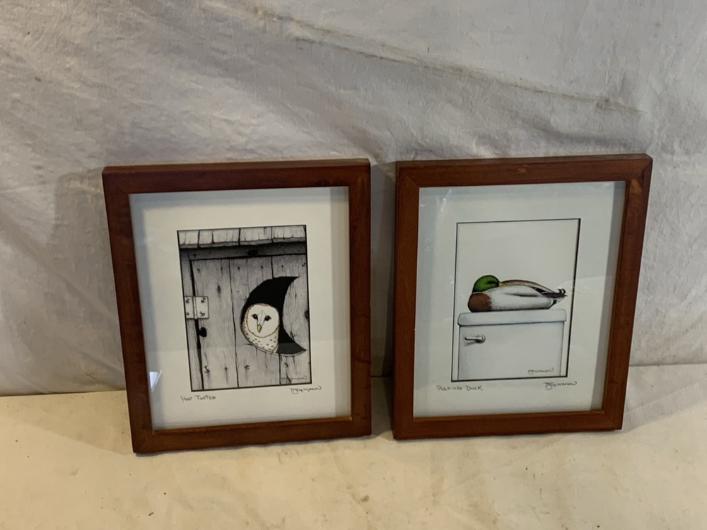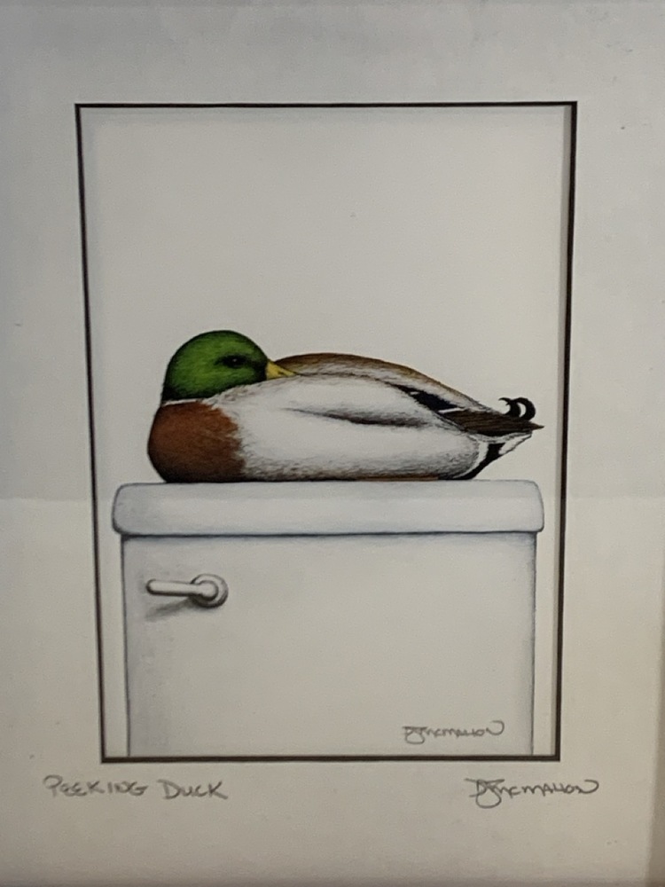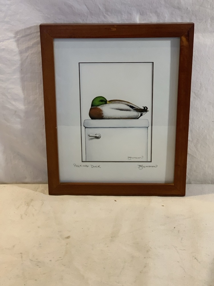 2 Framed Bathroom Art Prints Signed by Don McMahon - “Hoo Tooted” and “Peeking Duck” ~ 9 1/4” x 11 1/4”