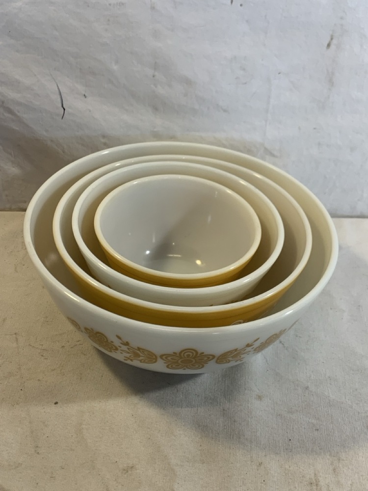 Vtg. Butterfly Gold Pattern 4pc Pyrex Mixing Bowls